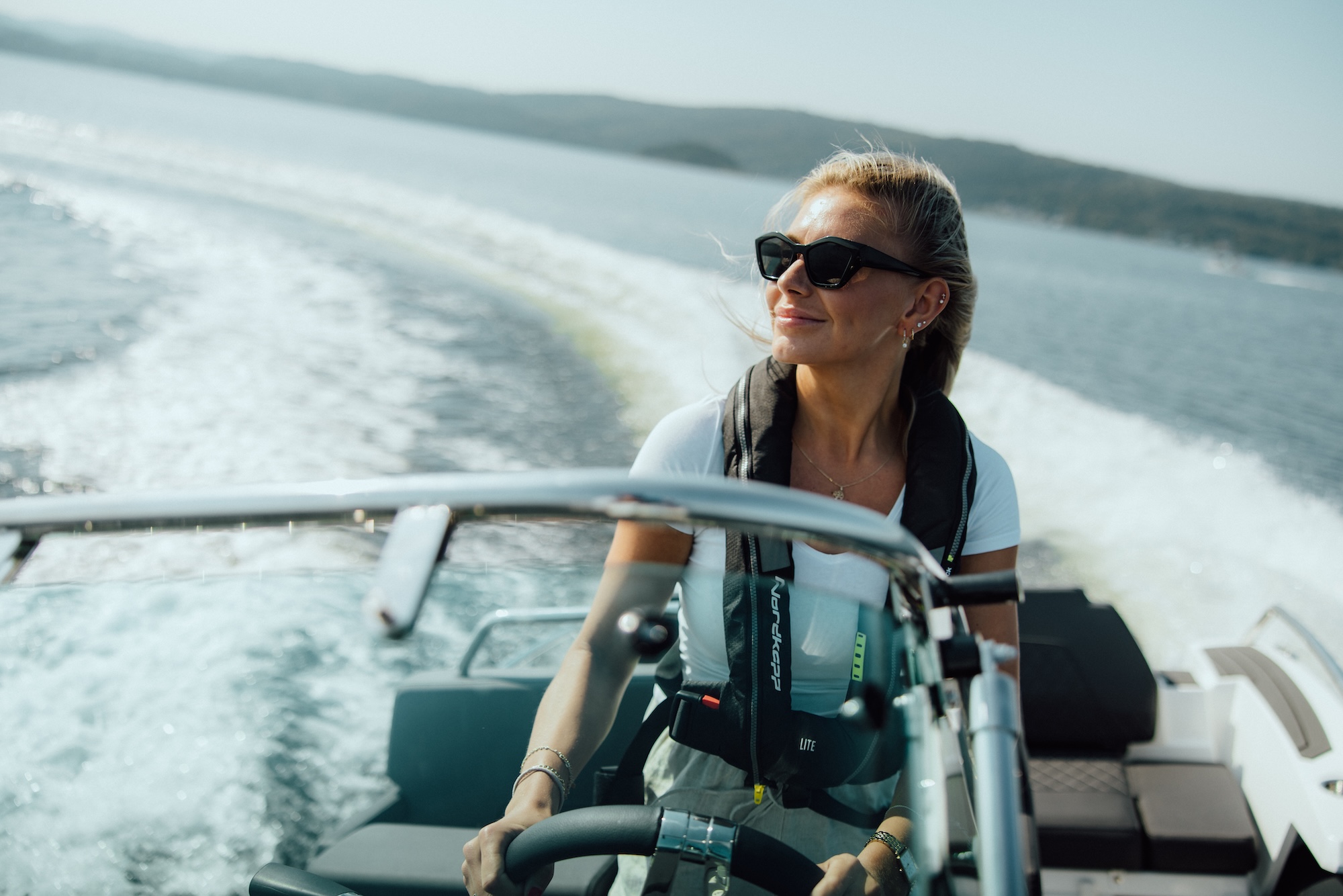 Airborne 7 kan også utstyres med praktiske løsninger som kjøleskuff, baugpropell, ankervinsj og Fusion stereo – detaljer som gjør båten godt rustet for lange og komfortable dager på vannet. Konsollen skjuler både sprayhood og kalesje, slik at du raskt kan beskytte deg mot vær og vind.