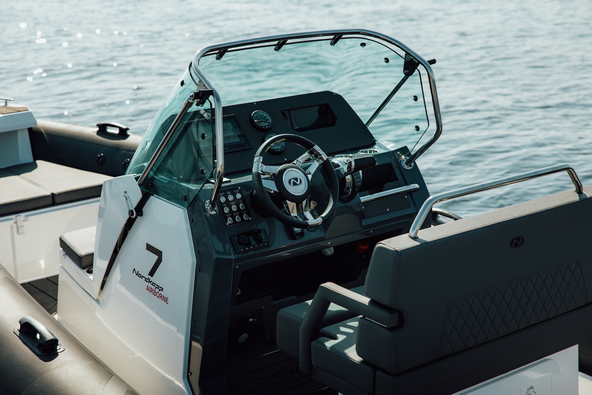 Nordkapp Airborne 7 kombinerer det robuste RIB-konseptet med mer enn 30 års erfaring fra utvikling av fritidsbåter. Resultatet er en sporty og komfortabel båt som passer like godt til aktive turer som rolige dager på sjøen.