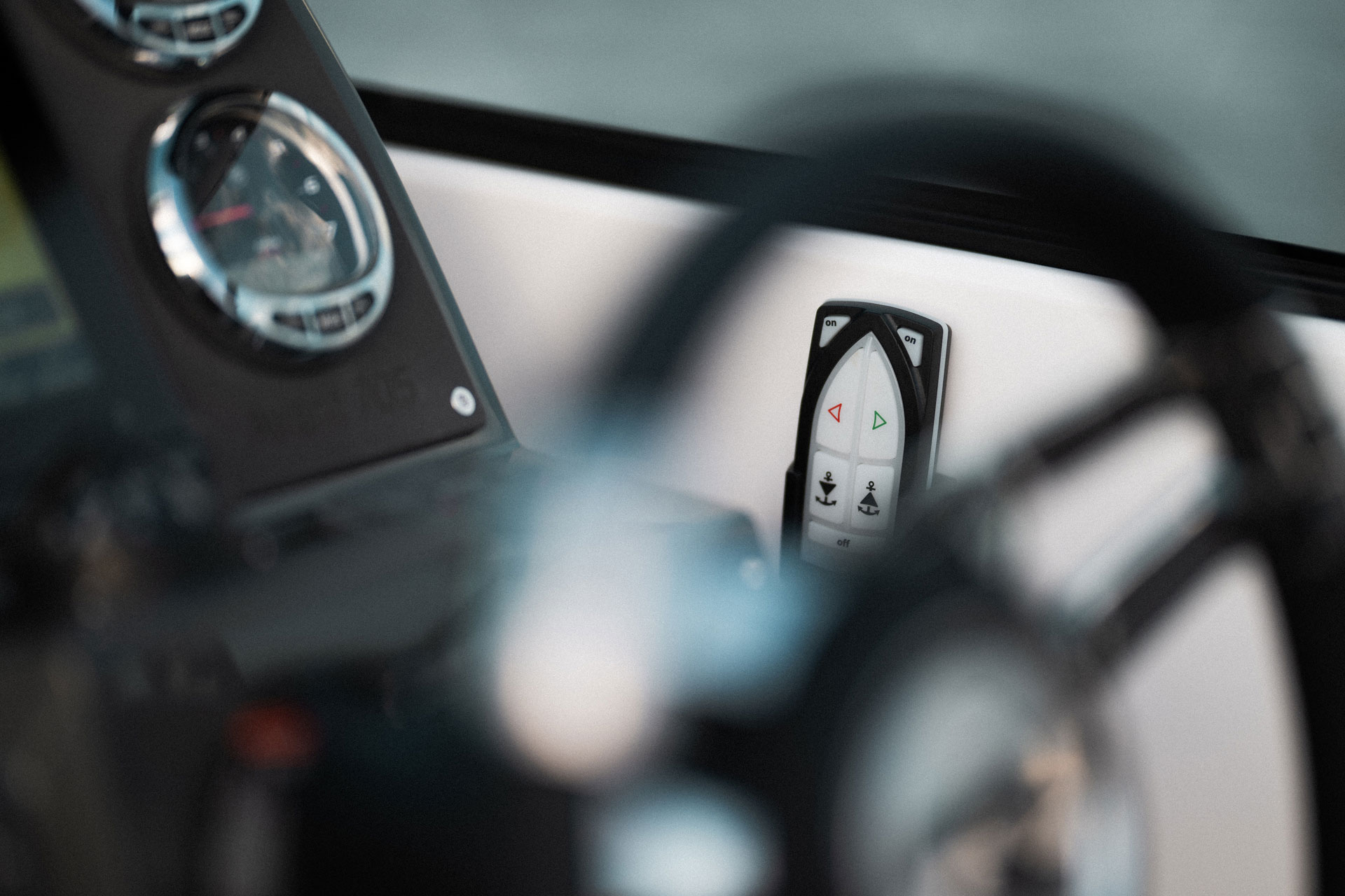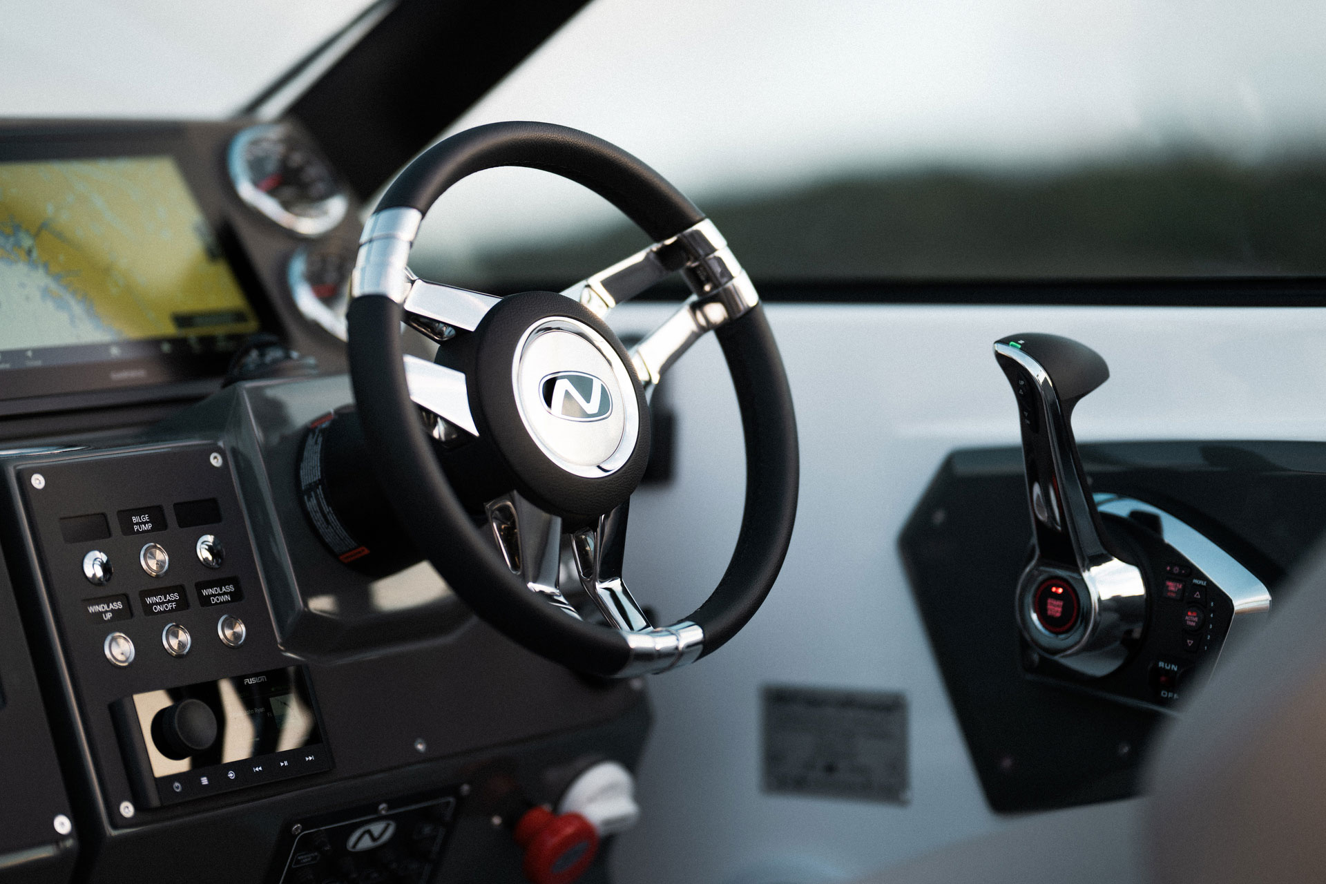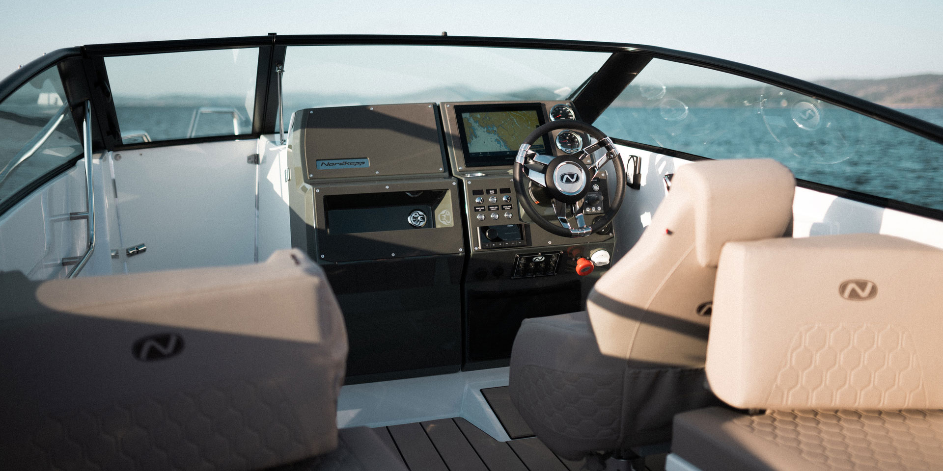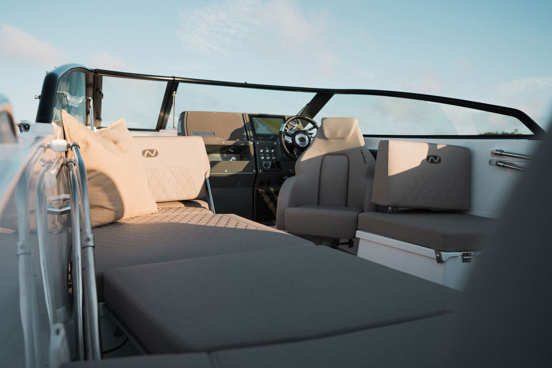 Førerplassen er ergonomisk utformet og førersentrert, slik at du får optimal kontroll og oversikt under kjøring. Dette gjør båten like godt egnet til rolig cruising som til mer aktiv kjøring.