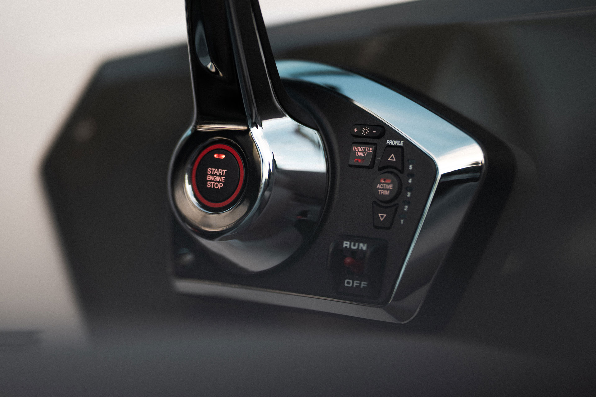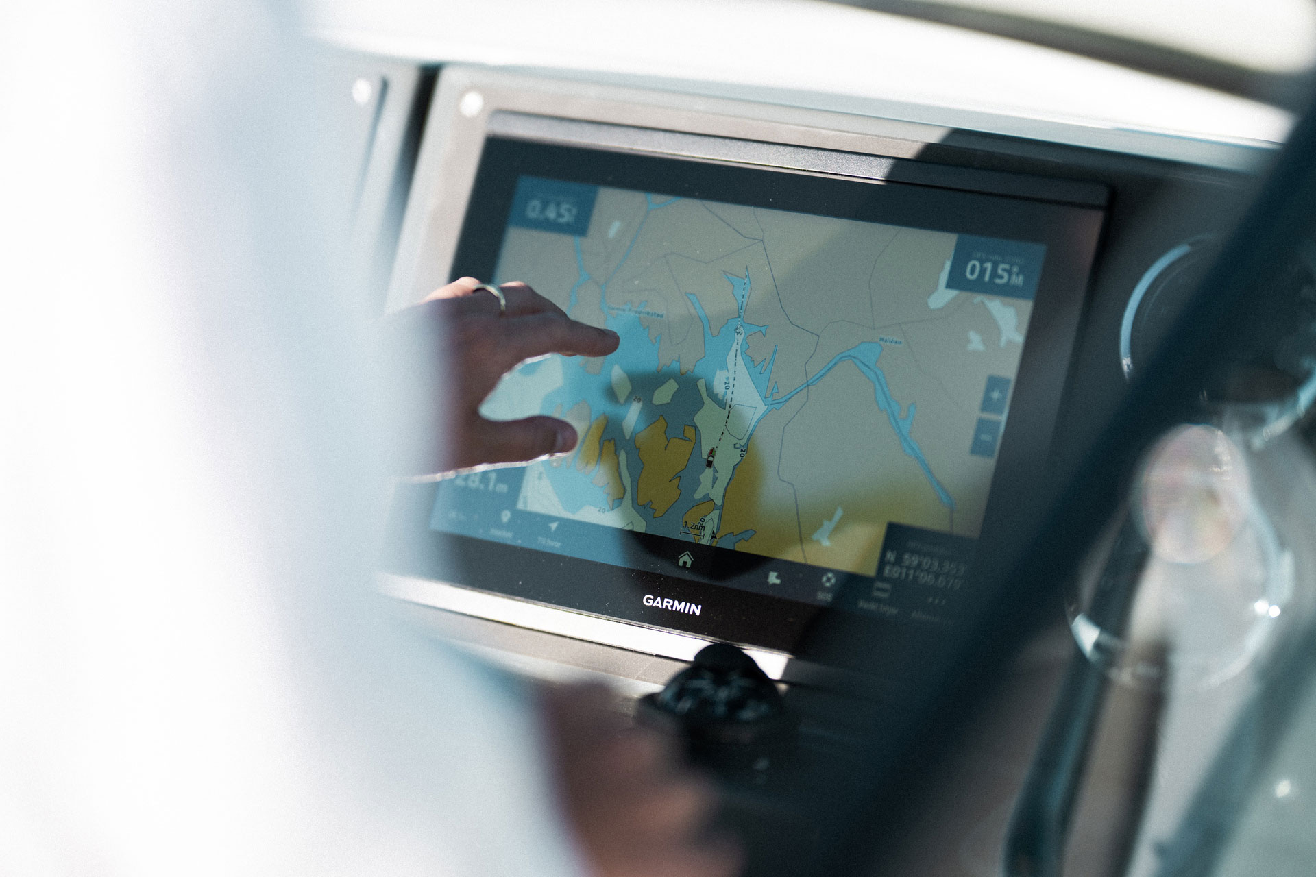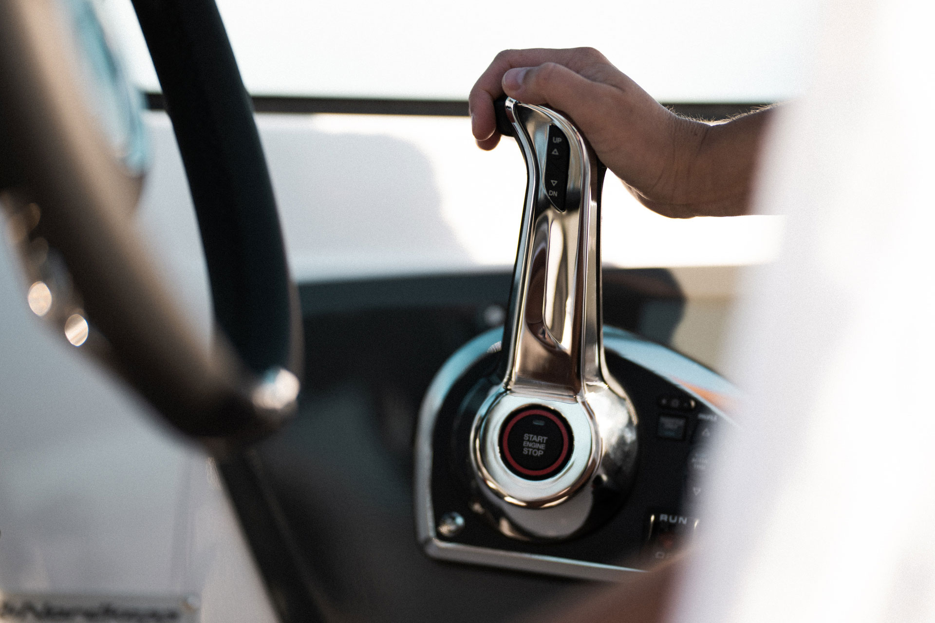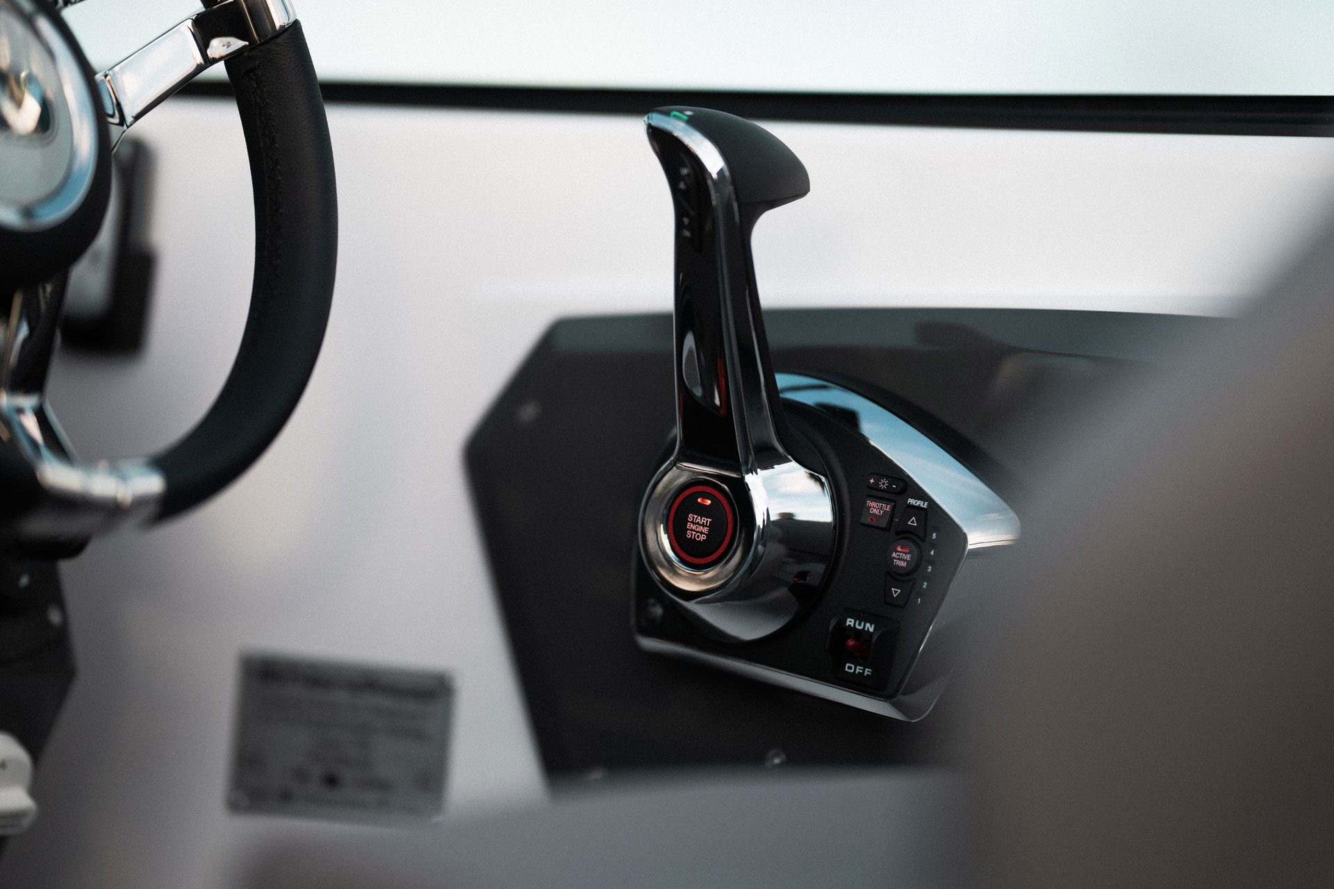 Førerplassen er ergonomisk utformet og førersentrert, slik at du får optimal kontroll og oversikt under kjøring. Dette gjør båten like godt egnet til rolig cruising som til mer aktiv kjøring.