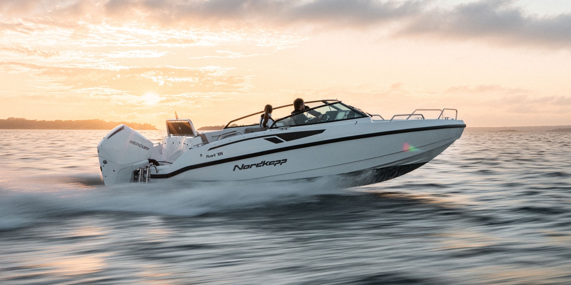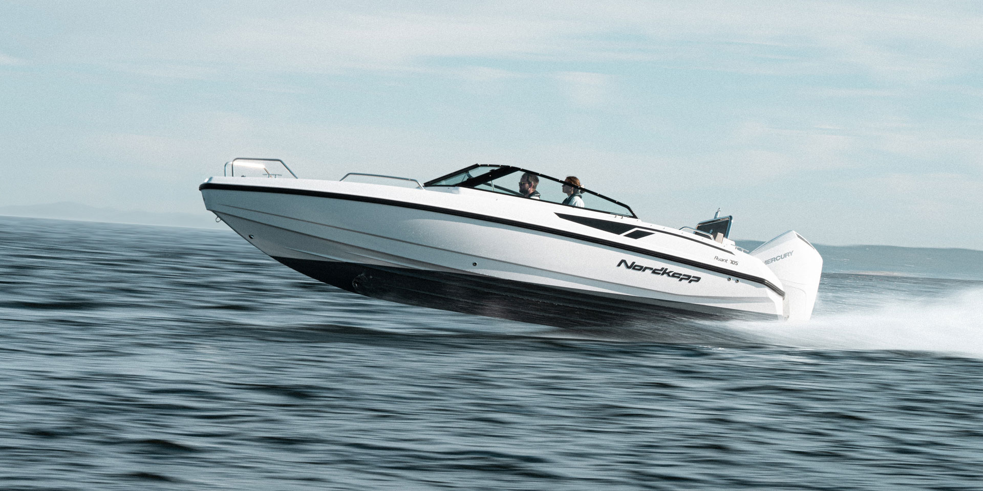 Båten kan leveres med kraftige Mercury-motorer som gir imponerende ytelse og pålitelig drift. Kombinasjonen av det effektive skroget og moderne motorer gir både god akselerasjon, høy toppfart og økonomisk drift.