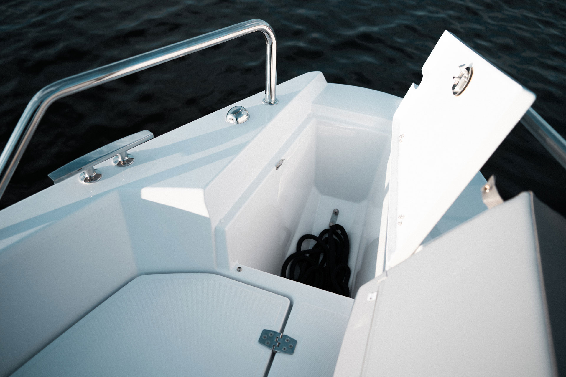 Avant 705 er designet med fokus på trygghet og komfort for alle om bord. Det høye fribordet gir ekstra sikkerhet, og det romslige akterdekket gjør båten til et naturlig samlingspunkt for sosialt båtliv.