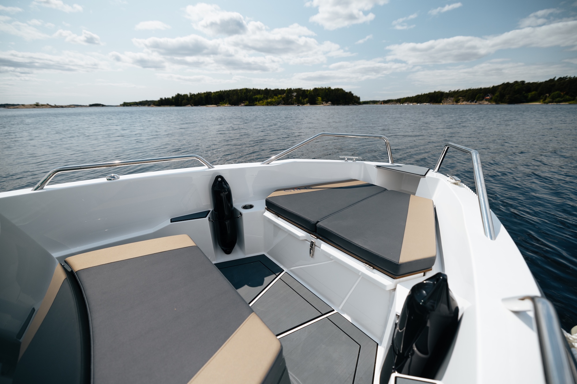 580S er utstyrt med en stor solseng i baugen, smarte trappetrinn for enkel ombordstigning og skjulte fendergarasjer – alt tilrettelagt for et uproblematisk båtliv. Akterdekket har plass til bord med fire koppholdere, og passer utmerket til måltider og sosiale stunder på vannet.