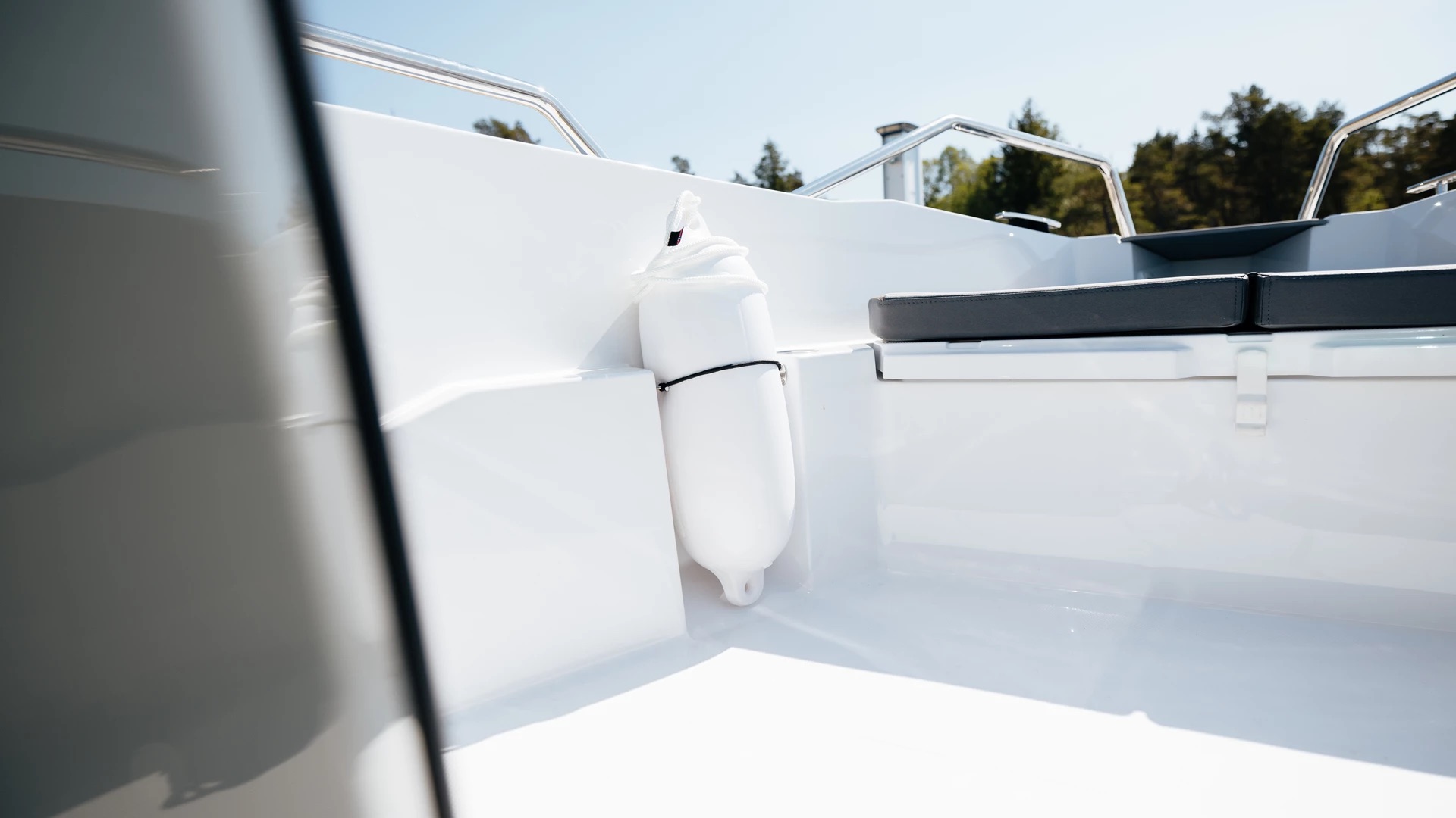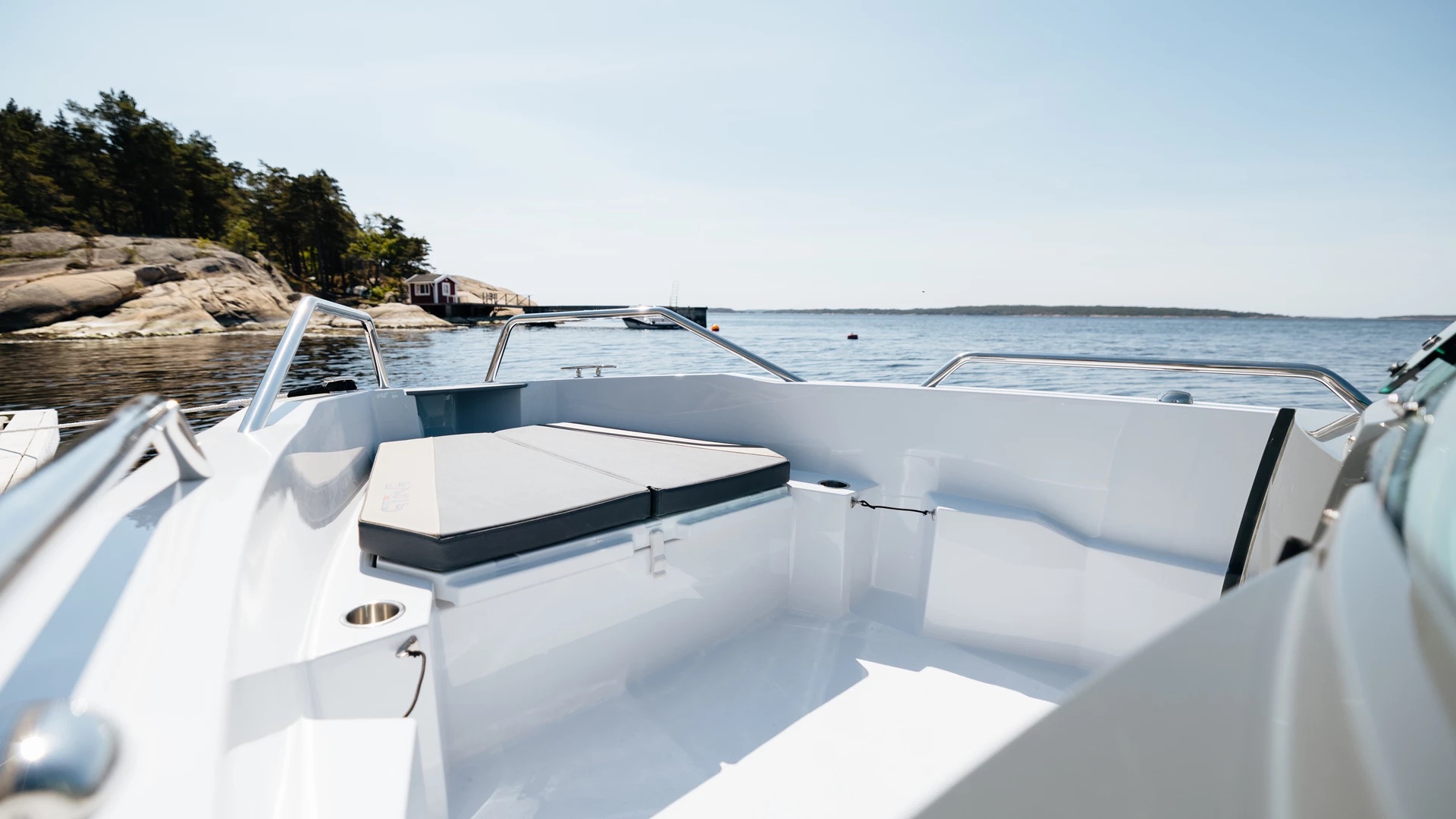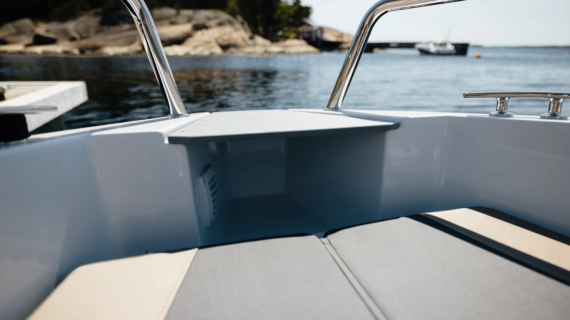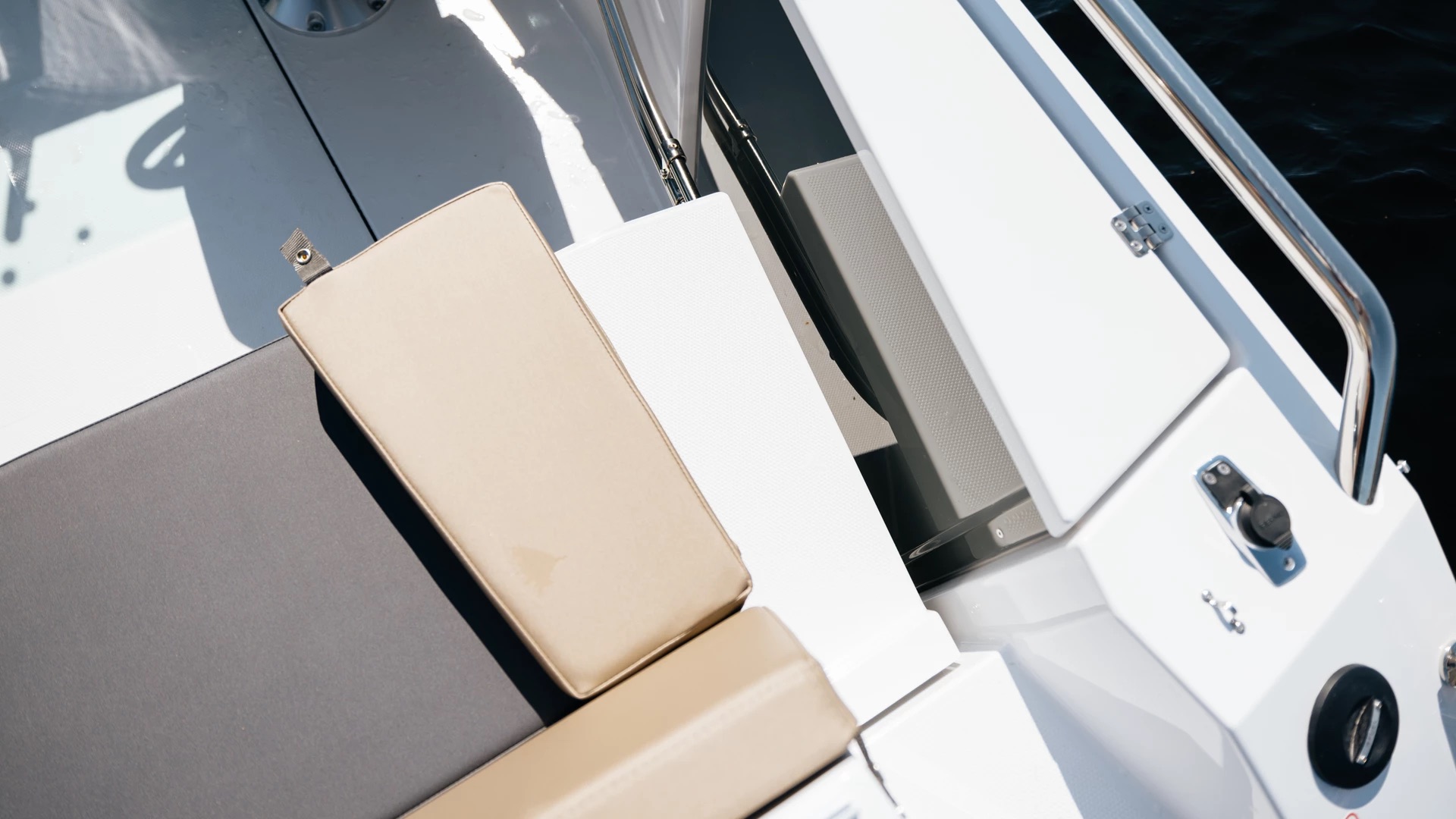 En stor solseng i baugen gir deg muligheten til å nyte solen i ro og fred, med integrerte koppholdere og god lagringsplass under dekk. Praktiske trappetrinn i skrogsiden gjør det enkelt å gå i land – selv med solsengen montert. Akterdekket har plass til cockpitbord og servering, og store badeplattformer gjør bading både trygt og behagelig for hele familien.
